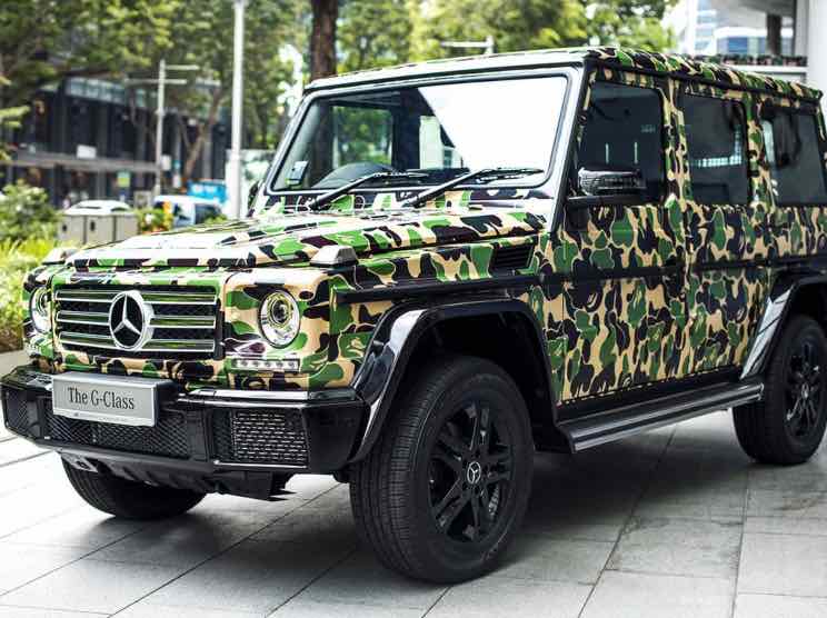 Infatti, risale al 1996 il primo progetto che vide la conversione di 11 Mercedes SL300 Gullwing del 1954 alla livrea BAPE, un vero oltraggio secondo alcuni appassionati più tradizionalisti! La Mercedes comunque ha spesso collaborato con la casa anche negli anni successivi: guardate quest’altra G-Klasse in tinta BAPE ad esempio.