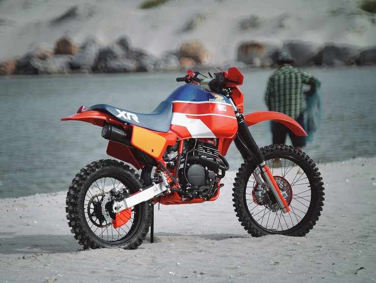 Altri componenti aggiuntivi includono nuove parti della forcella, protezioni dei freni, tachimetro e leve di ricambio, provenienti direttamente dal Giappone. A lavoro finito, la Honda XR600R Ha un aspetto sbalorditivo ed è completato da un rivestimento del sedile in pelle blu con un classico logo “XR”.