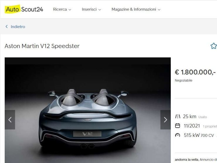 Su AutoScout 24, la Aston Martin V12 Speedster è in vendita 1.800.000 euro.