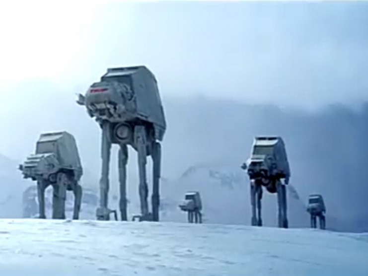 Per chi non fosse un accanito fan della saga, il camminatore AT-AT è uno dei veicoli da guerra più famosi che appaiono nella trilogia originale di Guerre Stellari, un enorme veicolo con una forma vagamente simile a quella di un elefante – forse un omaggio alla trovata del condottiero Annibale che valicò le Alpi con questi animali – capace di affrontare qualsiasi terreno grazie alle sue lunghe “gambe” robotiche.
