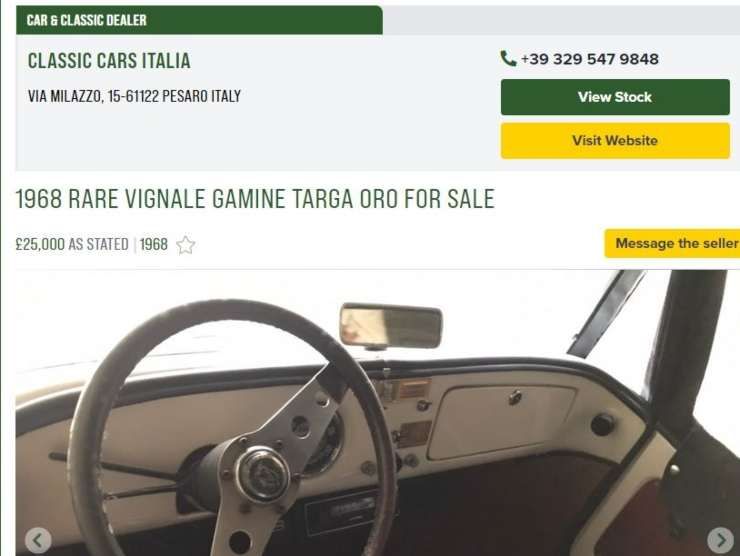 La Vignale Gamine monta un motore 110 F corretto. Da tagliandare perché ferma da qualche anno. Ha percorso circa 30.000 chilometri e si trova a Pesaro. Su Car and classic, la Vignale Gamine è in vendita a 25mila sterline, cioè poco meno di 30mila euro.