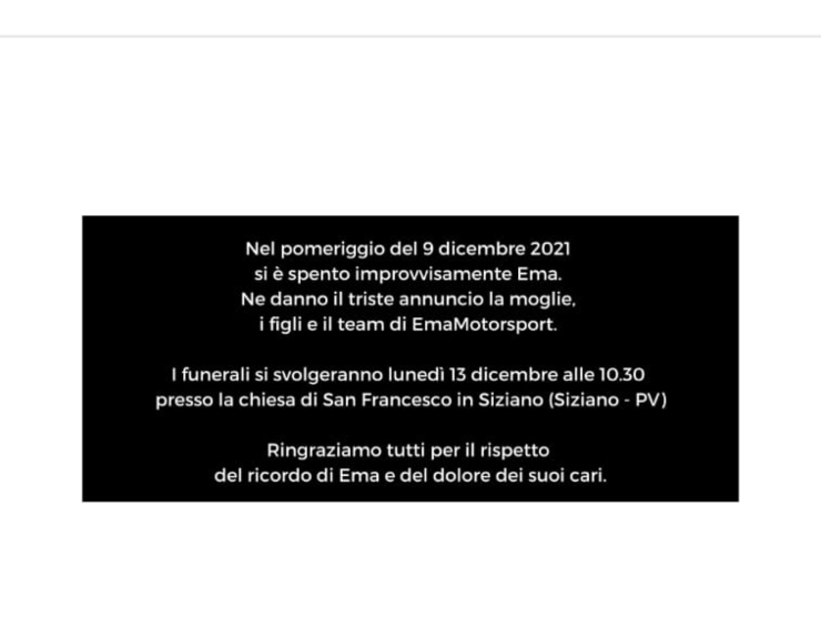 Potrebbe interessarti>>> Emamotorsport: trovato morto dalla moglie | Addio ad Emanuele Sabatino