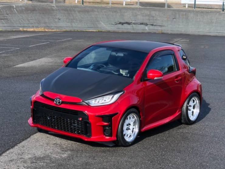 Se ci fate caso in effetti la vettura somiglia vagamente ad una Yaris GR spiaccicata e non è un caso. I fari, davanti e dietro ed il body kit sono stati prestati all’auto dalla onnipresente utilitaria giapponese in occasione di un tuning realizzato dalla ditta asiatica che l’ha presa in carico.