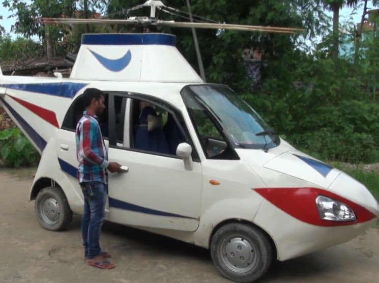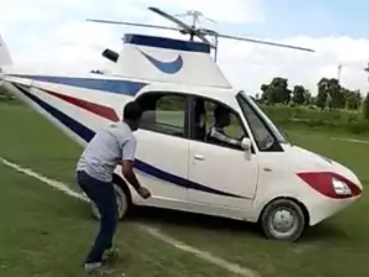 La piccola e scadente utilitaria indiana infatti è stata strumentale per questa persona che avendo sempre sognato di fare il pilota senza però potersi permettere i costosi esami per ottenere il brevetto da pilota, ha scelto di dare al suo sogno una forma diversa: quella di un elicottero.