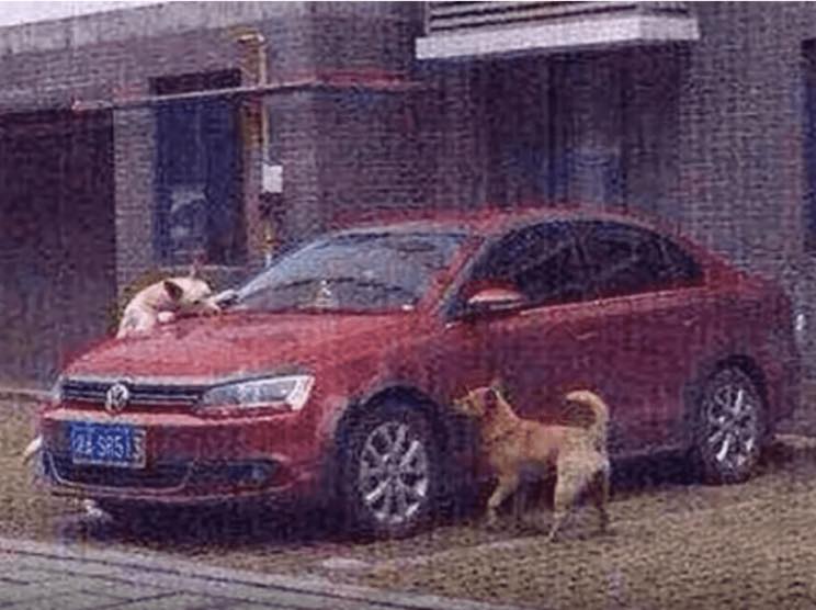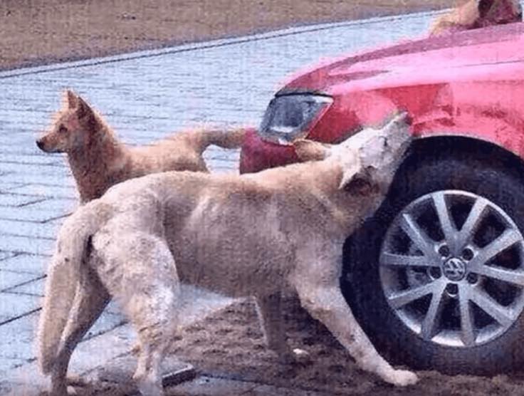 Come riportano le foto scattate da un reporter della CCTV- Chinese Central TV – i cani hanno assalito proprio l’automobile della persona in questione, mordendo con furia pneumatici e parafanghi! Secondo il reporter che ha casualmente avuto modo di assistere allo spettacolo: “I cani hanno lasciato tracce evidenti di morsi sull’auto prima di allontanarsi”.