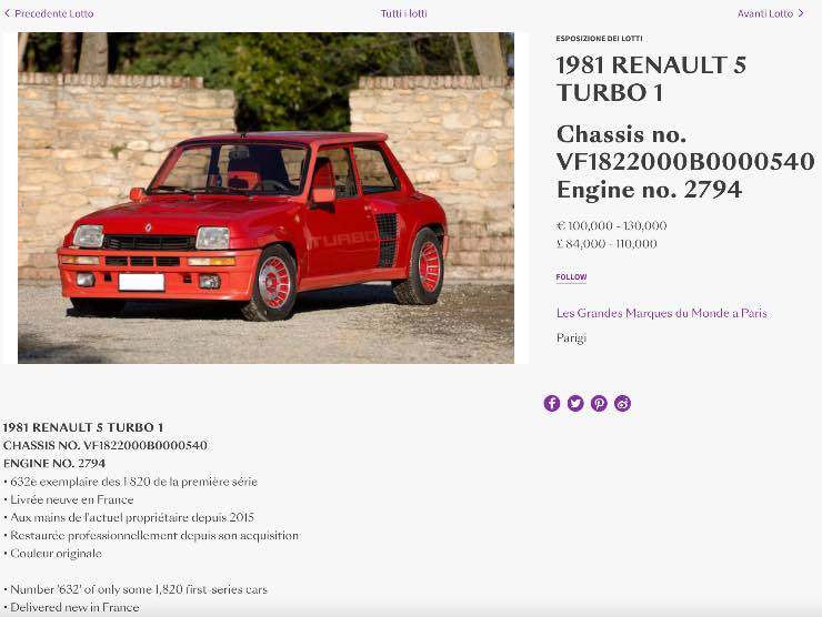 La Renault 5 Turbo (e in seguito la Turbo 2) era un modello speciale a motore centrale, costruito in serie limitata tra il 1979 e il 1986. Ora una di queste iconiche vetture è in vendita sul noto portale Bonhams. Scopriamola insieme.