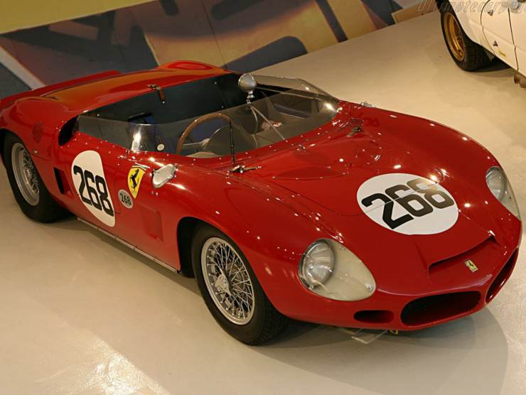 Ferrari 268 SP del 1962, tanto sfortunata quanto bellissima. A partire dal suo motore, un V8 capace di erogare ben 265 Cv di potenza massima. Era dotata anche di freni a disco, il cambio era manuale ed a cinque marce mentre la trazione posteriore. Il veicolo era a due posti, mentre il telaio sul quale poggiava era un tubolare in acciaio con tanto di carrozzeria spider.