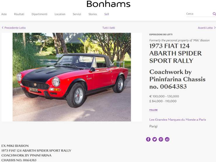 Stavolta, però, l’attenzione è ancora più grande perché in vendita ci è finita l’auto personale di un grande campione del mondiale rally anni 80. Il pilota in questione è Miki Biasion, mentre la vettura è la sua Fiat 124 Abarth Spider Sport Rally.