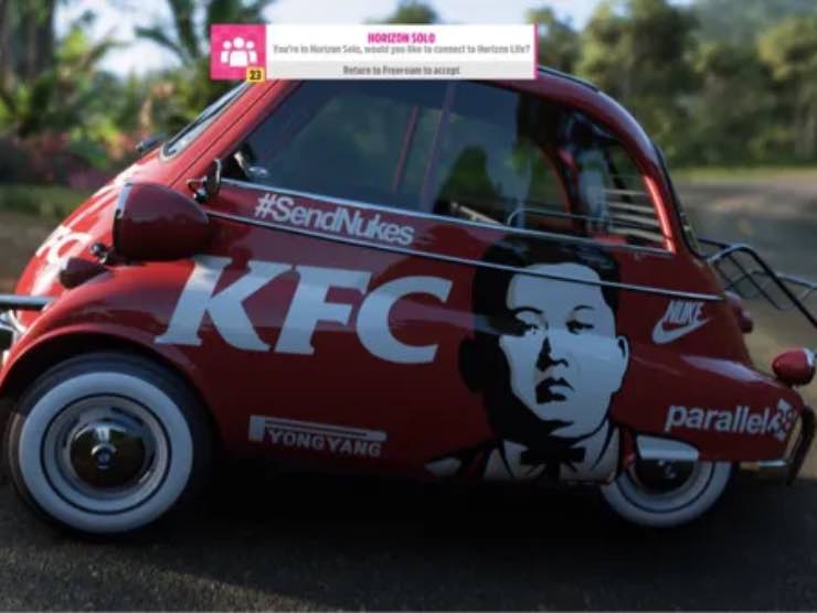 Facciamo un passo indietro: prima di approfondire la vicenda, dobbiamo spiegarvi un particolare su Forza Horizon 5. Nel gioco, i piloti possono creare una livrea personalizzata da apporre sulle proprie auto, cosa che anche il giocatore che ha ricevuto il ban aveva fatto.