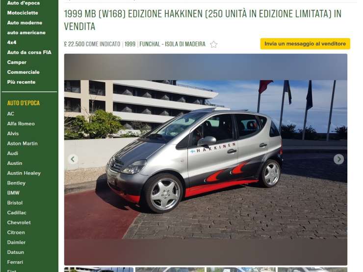 La vettura che abbiamo trovato in vendita su Car and classic è un’edizione limitata che commemora la vittoria di Maclaren Mercedes nel campionato di F1 del 1998 e anche in onore dei piloti dell’epoca David Coulthard e Mika Hakkinen.