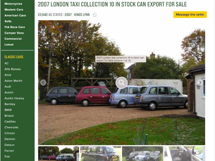 Arrivano tutti dal servizio taxi di Londra. Questo è specificato nella scheda di Car and classic per testimoniare come la revisione sia avvenuta ogni 6 mesi. Vetture che possono tornare in servizio in tutto il mondo tranne Londra. Oppure essere utilizzate come viaggio aziendale o familiare. Di certo averne uno ci renderebbe molto, molto cool.