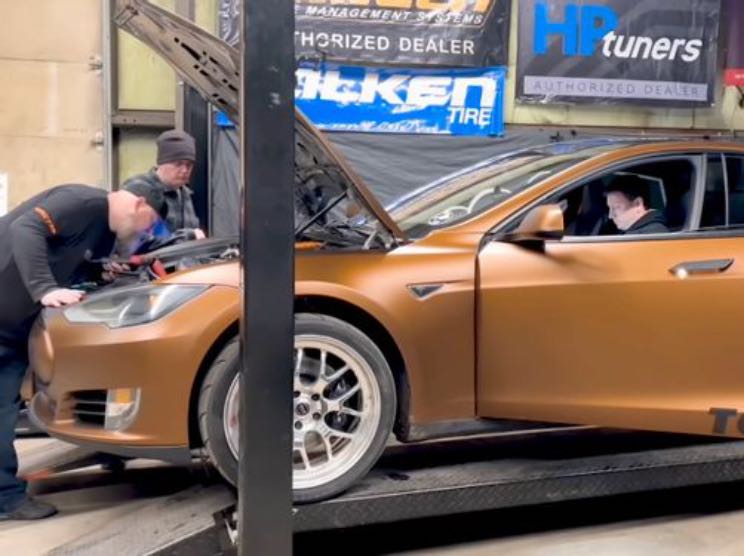 L’auto selezionata, una Tesla Model S color bronzo, ha ricevuto il V8 di recente: si trovano già online foto e video con il test dell’auto che viene “spremuta” a fondo per verificarne la potenza effettiva. Una normale Tesla arriva da 0 a 100 in meno di 3 secondi e mezzo.