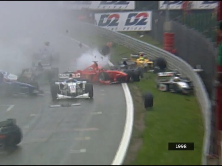 Nella memoria degli appassionati, la carambola del 98 rimane un episodio incredibile ed unico per la sua dinamica scioccante che possiamo guardare su YouTube senza preoccuparci dato che tutti i piloti sono usciti per fortuna incolumi dal disastro. Giusto un memorandum di quanto le misure di sicurezza in Formula Uno siano aumentate negli anni, salvaguardando i piloti anche nei casi più pericolosi.