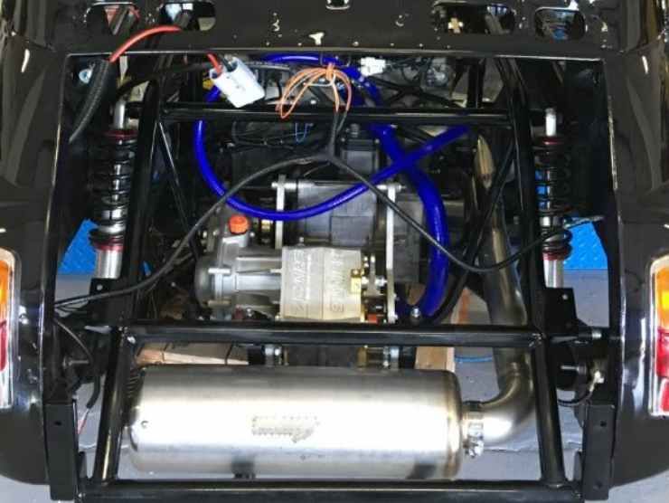 La conversione richiede la rimozione del montante e della base del sedile posteriore per fare spazio al motore. Sarà necessaria una paratia per racchiudere il motore. Il kit include essenzialmente tutto ciò di cui un proprietario avrebbe bisogno per convertire la propria auto, supponendo che abbia un’auto donatrice e un motore Hayabusa.