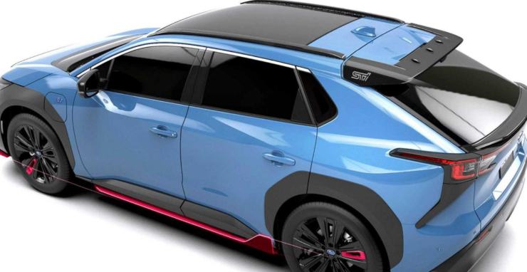 Oltre alla STI E-RA la Subaru ha presentato sul palco anche la Solterra STI Concept, una SUV full electric che ha mostrato miglioramenti estetici, come l’alettone posteriore e dettagli in tinta fucsia. Infatti, la Solterra STI mantiene il powertrain originale con due motori, per una totale di 217 CV (160 kW) e una batteria al litio da 71,4 kWh, che porterebbe ad avere autonomia per circa 460 km.