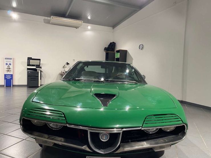 L’auto fu pronta come prototipo per l’Expo canadese del 1967, come previsto e riscosse un tale successo che Alfa decise per la produzione in serie che sarebbe iniziata nel 1970 ed avrebbe superato i 3.000 esemplari. Con il suo V8 da 230 cavalli, la coupé si rivelò una gradita sorpresa per i fans del marchio italiano. Oggi però è piuttosto rara.