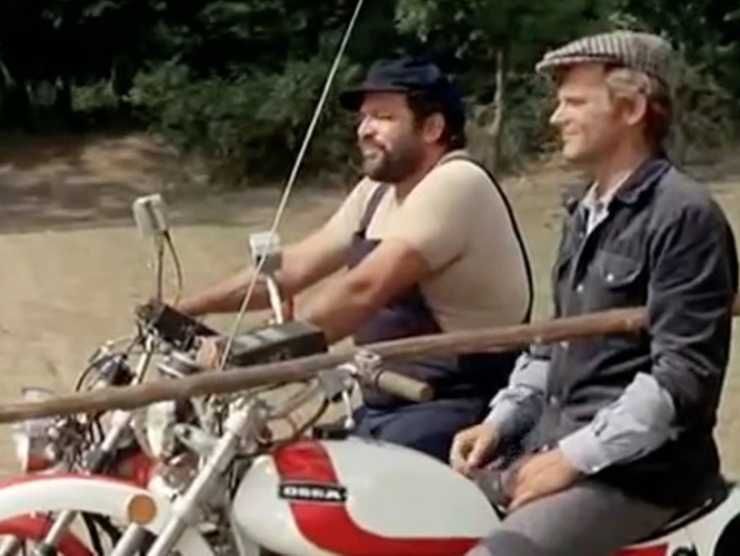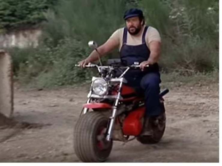 Per esempio, ricordate l’esilarante scena dell’inseguimento in motocicletta. E fate mente locale sulla simpatica moto cavalcata dal grande Bud Spencer.