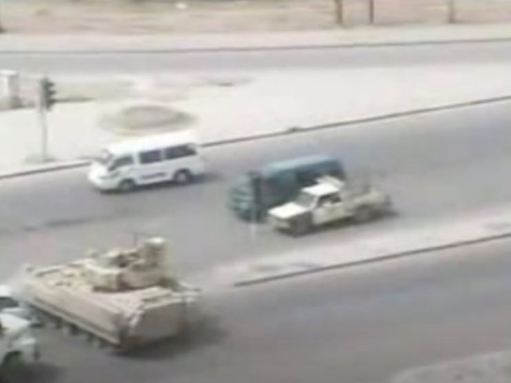 Nel video vediamo un terribile incidente tra un Infantry Fighting Veichle originario degli USA, un M2 Bradley ed una povera automobile di cui non siamo riusciti a capire marca e modello dalle immagini del video. Il Bradley non sarà esattamente un carro armato, essendo deputato al trasporto delle truppe, ma con un peso di oltre 27 tonnellate ed una torretta armata di cannone automatico può sicuramente fare grossi danni ad un’automobile.
