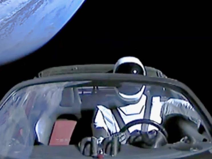 Starman, passeggero della Tesla Roadster sparata nello spazio, altro non era che un manichino vestito da astronauta, mandato in orbita con una copia di Guida galattica per autostoppisti nel cruscotto dell’auto ed un cartello con la scritta “Don’t Panic!”. Dell’involontario astronauta abbiamo ancora qualche immagine, scattata dalle numerose fotocamere del missile.