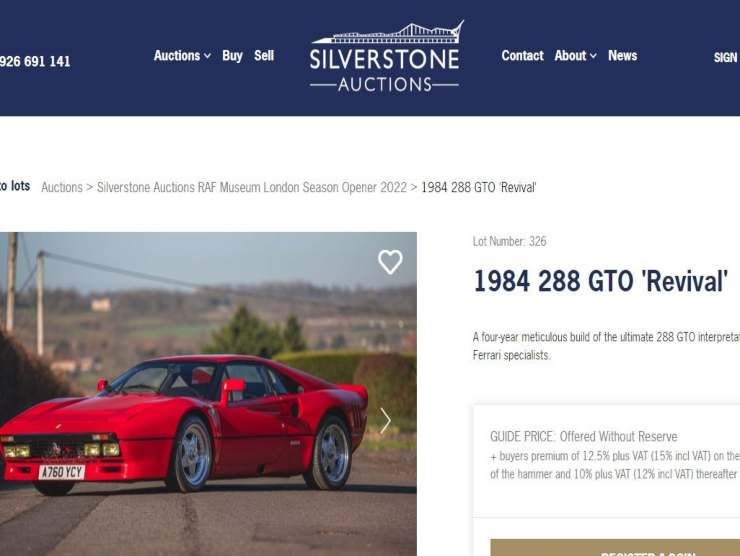 L’unico intervento esterno è stato la riverniciatura di alta qualità, il meticoloso rifacimento dei sedili in pelle nera e la rifinitura del cruscotto e delle schede delle portiere in Alcantara (come da GTO originale). Su Silverstone Auctions questa Ferrari “Revival” è in vendita. Ma non viene indicata la cifra richiesta. La trattativa è riservata.