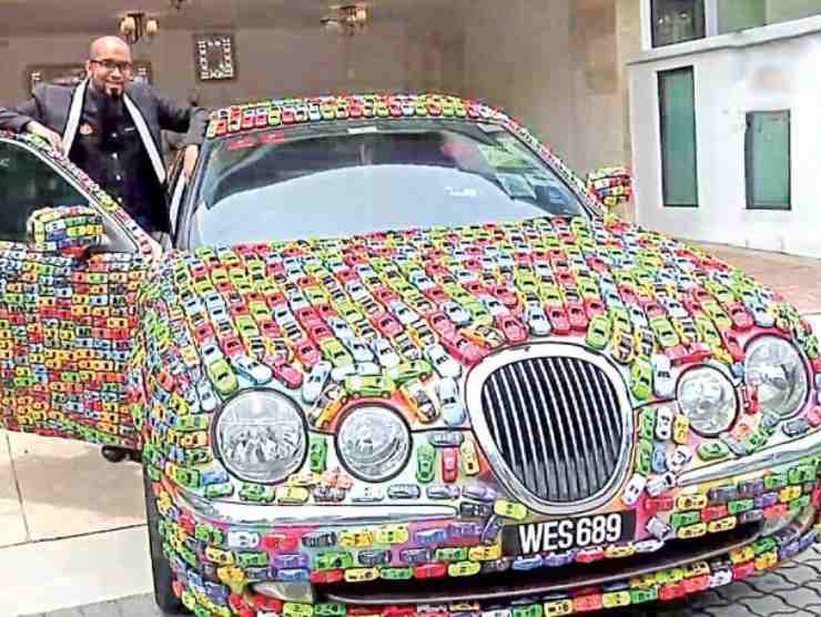 Il nostro imprenditore malese cominciava a non avere più spazio dove metterle e qui ha avuto l’idea geniale. Ha pensato di personalizzare la sua auto ricoprendola letteralmente con 4600 modellini provenienti dalla sua collezione…