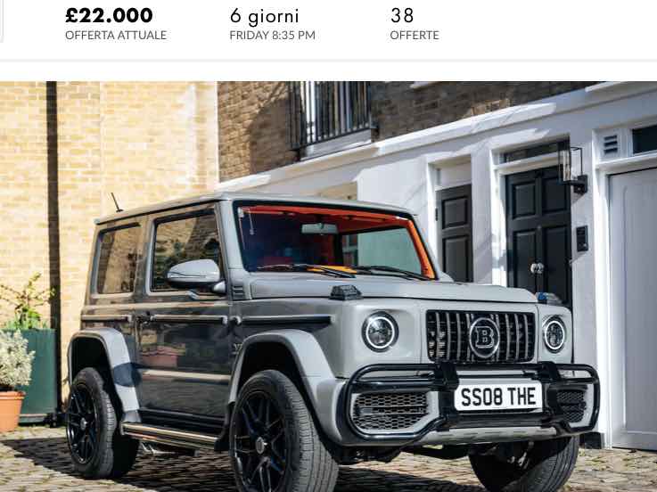 Per quanto sia una replica convincente, l’automobile è molto più piccola della G-Klasse originale, per non parlare dei gruppi ottici e della larghezza della griglia frontale. Ma in modo molto più eloquente parla il prezzo: appena 22.000 Sterline per un’auto da mezzo milione di Euro: non vi sarebbe sembrato strano? L’offerta più alta è questa, per il momento, e mentre scriviamo, il timer ci dice che mancano 6 giorni alla fine dell’asta. Grazie ma non faremo un’offerta. Meglio risparmiare, del resto Brabus fabbrica anche un’ottima Smart Fortwo a prezzi più popolari!