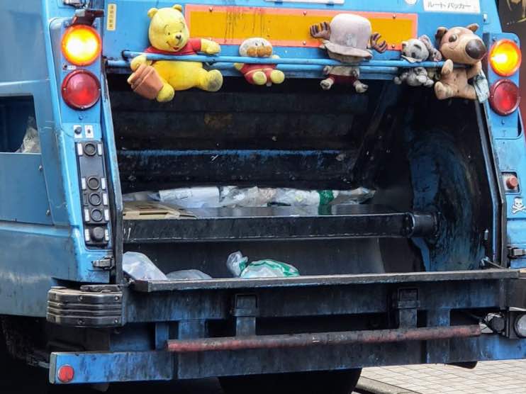 Per finire, in Giappone il fenomeno è diffuso ma per un altro motivo tra una specifica categoria di autisti: quelli della nettezza urbana. Su Twitter hanno fatteli giro del mondo le immagini dei camion di raccolta impegnati in una metropoli nipponica pieni di peluche, assicurati sul retro e sui lati dei mezzi. Com’è mai?