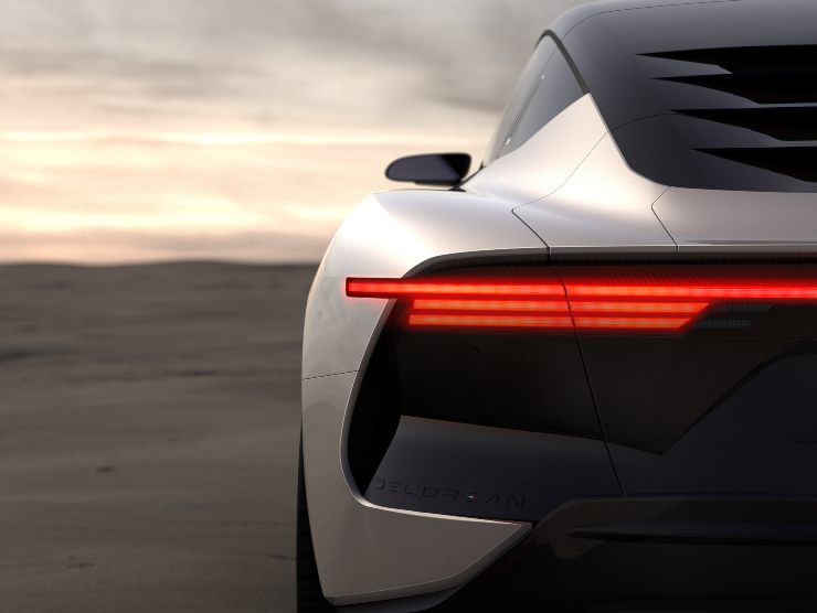 L’auto sarà grigia e nera proprio come la sua storica parente ed avrà un design del lunotto posteriore fortemente riconducibile a quello della DMC-12, con un diffusore posteriore che sembra scavare in profondità.
