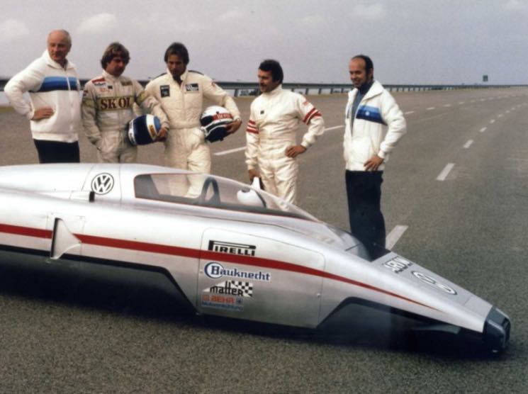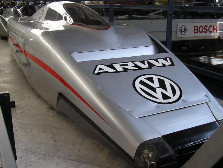 Costruita negli anni settanta nell’ambito di un esperimento volto a ridurre i consumi di carburante migliorando l’aerodinamica, la Volkswagen ARVW vantava un coefficiente di resistenza all’aria di appena 0,15. Sarà mica perchè la vettura non supera il metro di altezza? Comunque, con i piloti Helmut Henzler e Keke Rosberg – si, è il padre di Nico Rosberg, vecchia conoscenza per i fans della Formula 1 – quest’auto segno il record dell’ora il 18 ottobre 1980 sulla pista di Nardò in Italia.