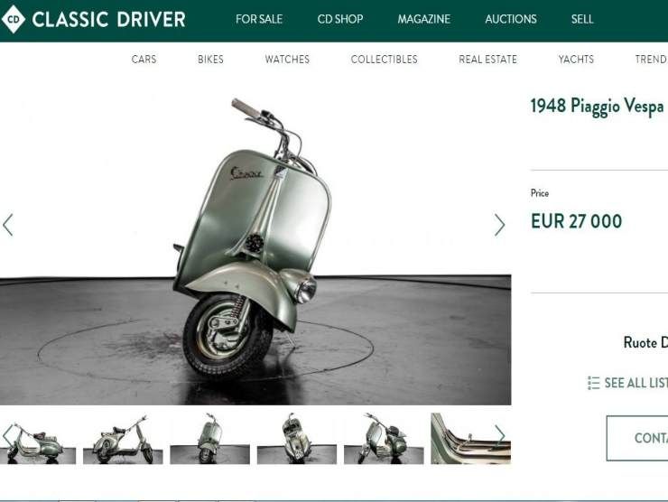 In generale la Vespa sembra in buone condizioni, sia per quanto concerne il telaio e la ciclistica, sia per quanto riguarda la vernice, segnalata “in eccellente stato”. Nuovi, poi, sia la sella, che gli pneumatici. La troviamo in vendita a 27mila euro. E, comunque, se non vi fidate della scheda, potete sempre andare a visionarla a Reggio Emilia…