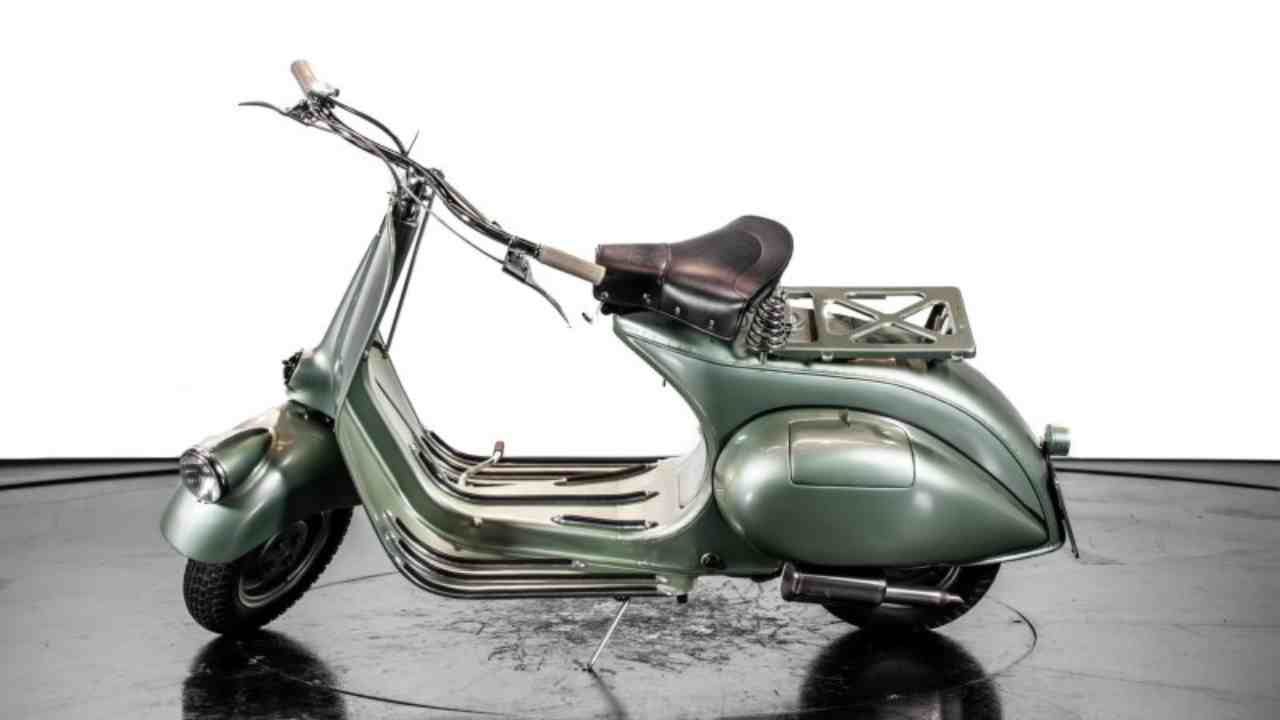 La Piaggio Vespa Bacchetta VT1 che abbiamo scovato in vendita su Classic Driver e Ruote da sogno è dotata di targa originale CR, telaio V1T16354. Monta un motore V2M01051, che la scheda segnala mantenuto in buona efficienza.