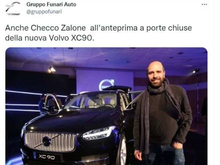 Nella realtà, Checco, ha una passione sfegatata per un brand di automobili svedese, e spesso, ha introdotto proprio veicoli Volvo nelle sue riprese. E infatti, vi proponiamo una foto del nostro Checco con una Volvo XC90, il suv di punta della casa nord europea.