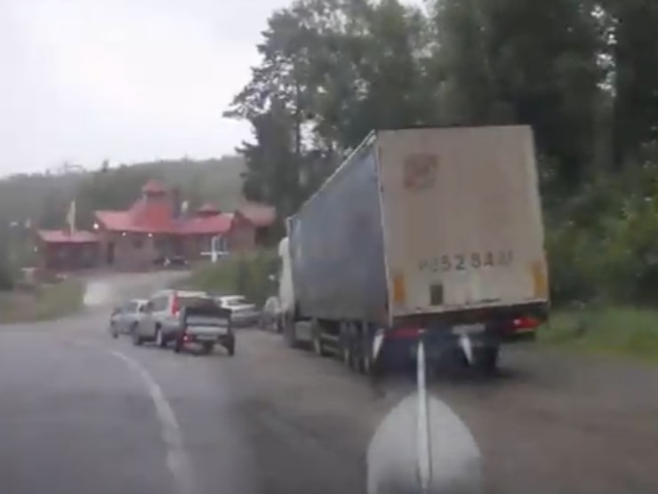 Ad un certo punto, l’automobile affrontando una curva sbanda vistosamente, iniziando a roteare pericolosamente su se stessa. Dall’altra parte della strada arriva una motrice: sembra che l’auto sia destinata a schiantarsi contro di essa ma per puro miracolo, lo scontro viene evitato! Alla fine, la vettura che ha rischiato il sinistro si ferma al lato della strada per il sollievo del fortunato guidatore.