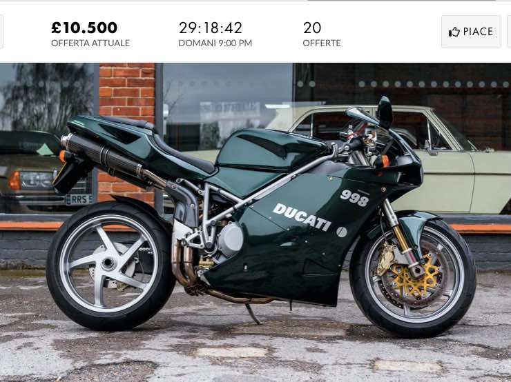 Come potete vedere nella foto, il prezzo non è proprio contenuto dato che siamo già arrivati ad oltre 10.000 Sterline quando mancano poche ore alla conclusione dell’asta. Se volete fare un’offerta last minute però, l’annuncio è ancora attivo. Unica raccomandazione, non provate a schivare i proiettili con la moto come in Matrix, non è assicurata contro le sparatorie…