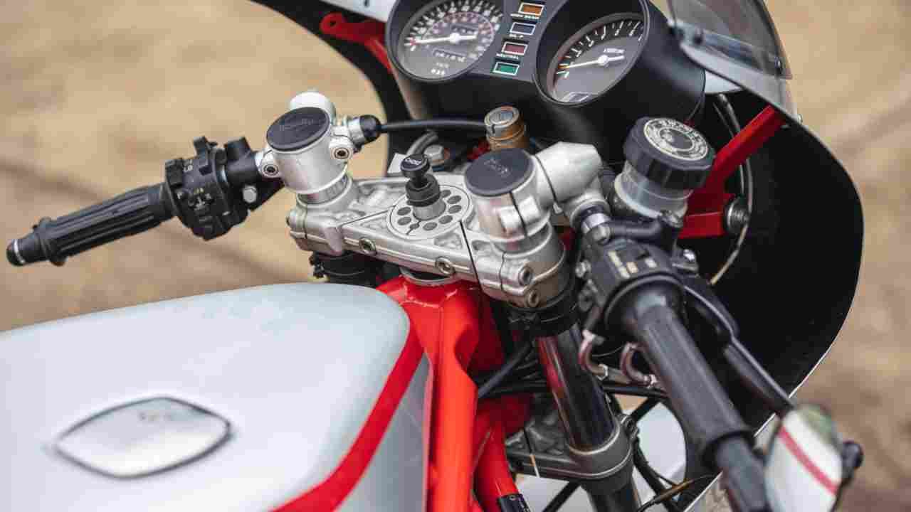 La sospensione anteriore è composta da una coppia di forcelle Marzocchi da 38 mm e nella parte posteriore c’è una disposizione personalizzata del monoammortizzatore che era molto in anticipo sui tempi.