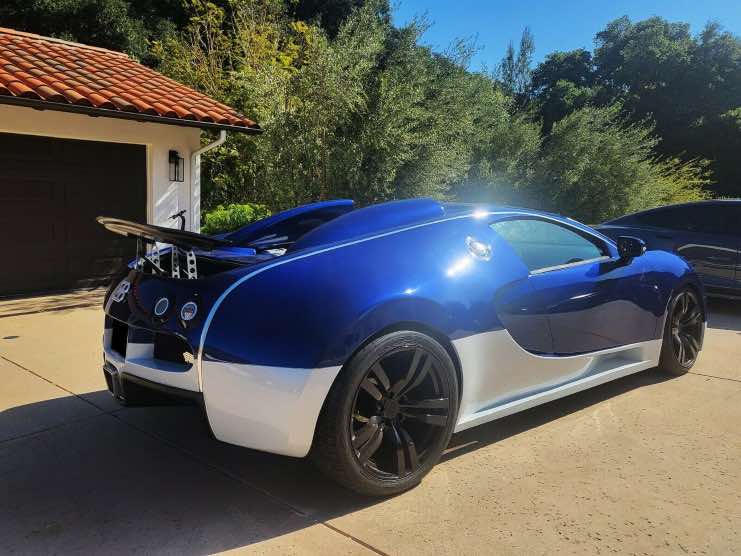 L’auto che vedete in queste foto non è una Bugatti Veyron, benché da davanti la somiglianza sia piuttosto impressionante. Sotto quel telaio si cela una Pontiac GTO con un rispettabile motore V8 che però non arriva a proporre nemmeno una frazione della potenza del mostruoso W16 da circa 1.000 cavalli dell’auto originale. A quel prezzo, non si poteva fare di meglio…