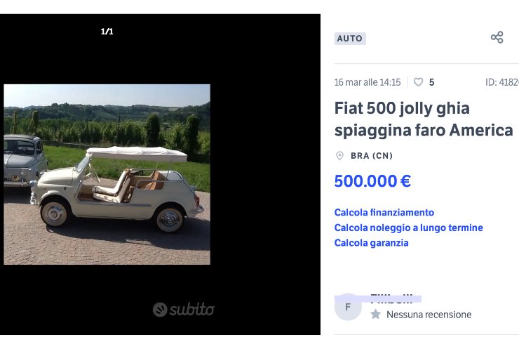 Avete mai visto una “normale” Fiat 500 dei tempi andati con un cartellino del prezzo del genere? Siamo sicuri di no. Eppure, esiste davvero. La domanda è: qualcuno la comprerà sul serio?