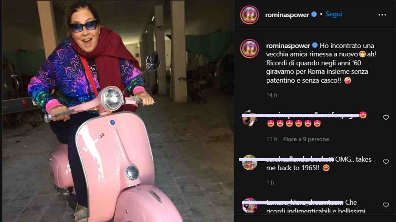 Sul social media del momento, possiamo vedere l’ex moglie di Albano al settimo cielo in sella alla mitica Vespa. Un veicolo tanto caro a milioni di persone in tutto il mondo e, evidentemente, anche a Romina Power che commenta così questo scatto con la seguente didascalia: “Ho incontrato una vecchia amica rimessa a nuovo. Ah! Ricordi di quando negli anni ‘60 giravamo per Roma insieme senza patentino e senza casco!!”.