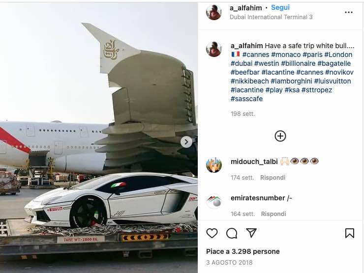 Durante una vacanza a Cannes in Francia, Alfahim avrebbe affidato ad una compagnia di trasporti internazionali la propria Aventador con il compito di rimpatriarla in sicurezza dalla Francia agli Emirati Arabi Uniti. Purtroppo, all’insaputa del milionario, si trattava di una truffa: la compagnia era un’elaborata bufala e la persona entrata in contatto con Alfahim, un ladro. “Ho parlato con quest’uomo che mi assicurava che l’auto era stata spostata a Londra. Poi ha bloccato il mio numero e non si è più fatto sentire”, ricorda il milionario.