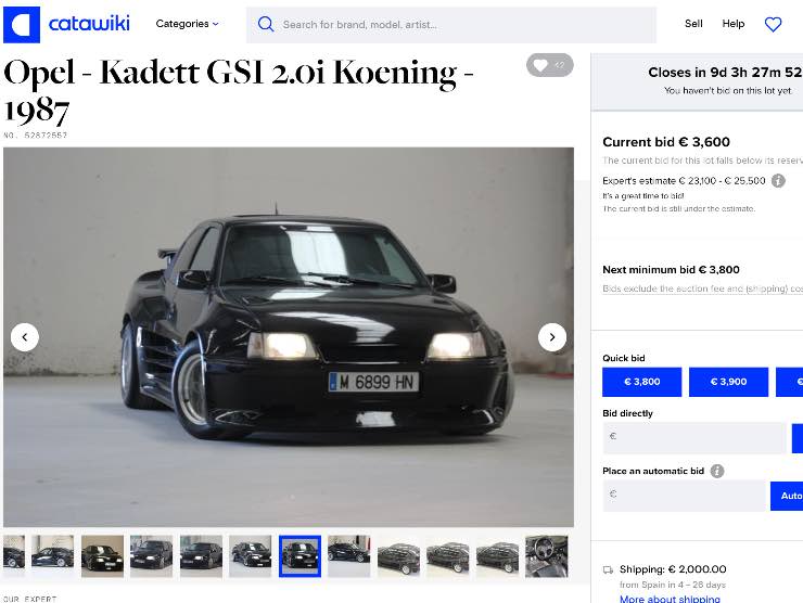 Quella in vendita su Catawiki è una Opel Kasett GSI Koening del 1987 in buone condizioni. Parliamo quindi di un’auto della quinta generazione realizzata nel corso di diversi lustri. E, infatti, è proprio la sua caratteristica cabrio che potrebbe renderla molto appetibile nella vendita su Catawiki.