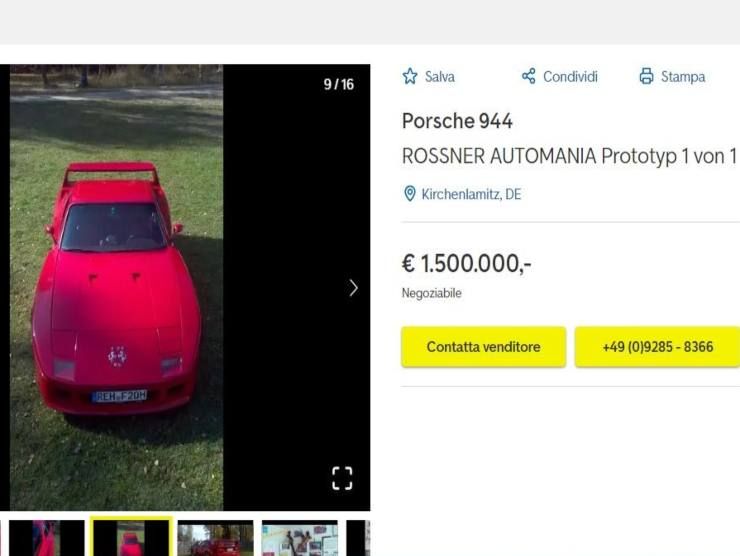 Si tratta di un pezzo unico da collezione, sviluppato e creato negli anni ’80 in Baviera dal produttore di veicoli AUTOMANIA GmbH, che utilizza la carrozzeria di una PORSCHE 944. Scopriamola insieme su AutoScout 24.