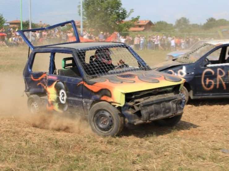 Non solo: a quanto pare, la tradizione dei Demolition Derby si è diffusa pure in Europa: qui sopra potete vedere un evento tenutosi in Italia: al posto delle fumose utilitarie americane ovviamente, poteva mancare la Fiat Panda? Siamo sicuri che un’auto così resistente potrebbe stracciare chiunque. Chi oserebbe entrare nel ring per affrontarla?