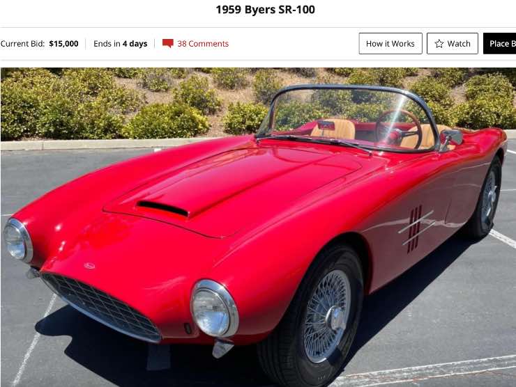L’asta in corso su Bring a Trailer sta avendo un esito sorprendente: questa Byers SR-100 risalente agli anni cinquanta infatti non sta affatto spopolando sul portale e se le cose non cambiano entro quattro giorni dal momento in cui stiamo scrivendo il pezzo, qualcuno potrebbe portarsela in garage al prezzo di una Fiat 500 nuova! Non stiamo scherzando…