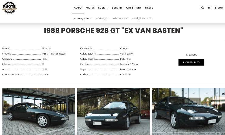Navigando sul web ci siamo imbattuti in una stupenda supercar, messa in vendita dal noto rivenditore italiano: Ruote da sogno. L’auto in oggetto è una magnifica Porsche 928 di colore verde metallizzato (elegantissima oltre molto sportiva).