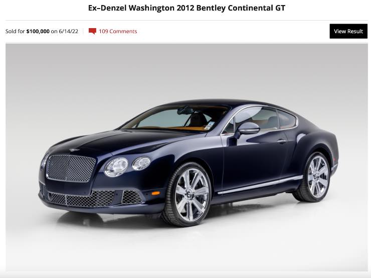E’ vero che si tratta di un’auto usata, ma la Continental GT di Washington con la sua livrea blu oceano sarebbe dovuta andare a molto di più. Un’auto appartenuta ad una celebrità non dovrebbe prendere valore anziché perderlo? Inoltre, chissà perchè l’attore ha scelto di sbarazzarsene? Un vero peccato. Fosse costata meno, l’avremmo presa noi!