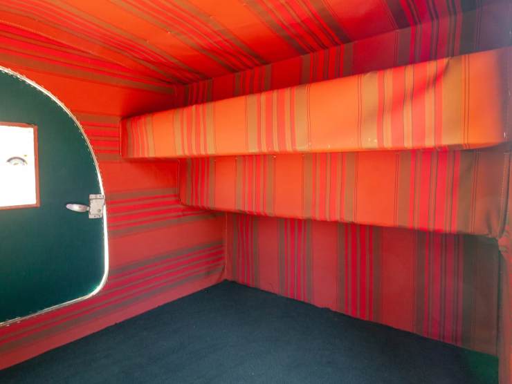 Il rivenditore fa notare però che la stufa non funziona e necessita di essere aggiustata. Gli interni presentano pareti curve ricoperte di stoffa a strisce rosse abbinate ad un pavimento in moquette. Un ripiano portaoggetti, poi, è posizionato attraverso la parete posteriore. La ruggine è visibile sui componenti del telaio inferiore. Il suo prezzo, è di meno di 900 euro. Per quanto non sia un rimorchio perfetto, è davvero un affare da non lasciarsi sfuggire.