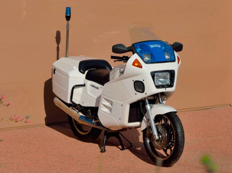 Costruita come moto da turismo, la Norton Commander è rimasta in produzione fino ai primi anni novanta, periodo in cui la polizia di molti paesi l’ha adottata come mezzo per pattuglie ed inseguimenti. Questa qui ad esempio è nelle mani di un collezionista di Dubai che è stato molto attento a tenerla bene e le ha fatto percorrere solo 2.000 chilometri in tutto.