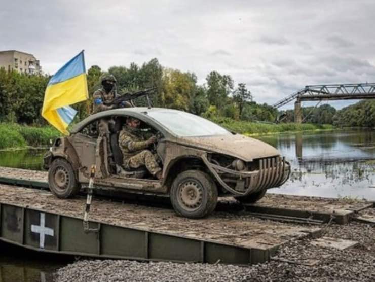 Protagonista della foto, una vettura utilizzata – secondo la didascalia con cui la foto è stata presentata su Quora – dai soldati di una brigata di paracadutisti ucraini in questi giorni. I militari sono stati fotografati durante l’attraversamento del fiume Siverskiy-Donest che si trova nella Regione di Izium, tornata proprio in queste settimane nelle mani ucraine secondo i cronisti.