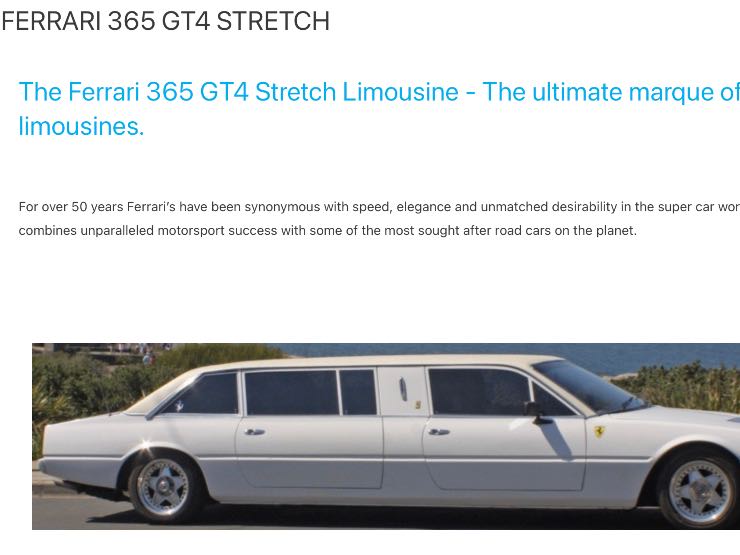 Tempo fa, abbiamo visto che le Ferrari vengono trasformate in limousine molto più spesso di quanto sarebbe consigliabile fare con auto così rare e costose. Esiste una 360 Modena che può portare ben più dei due passeggeri originariamente ospitati sull’auto di produzione ma non è l’unica limousine a portare il Cavallino Rampante sul suo cofano.