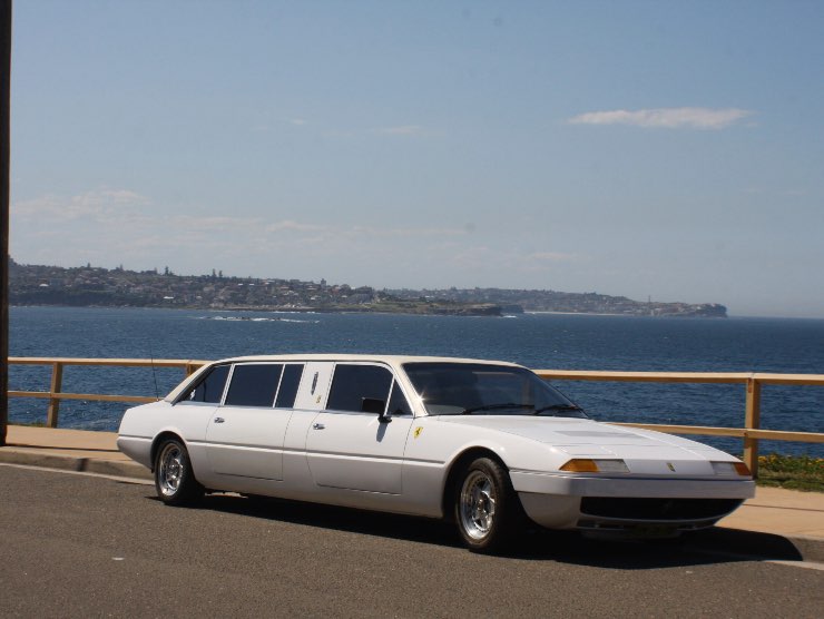 A trasformare una normale Ferrari 365 GT4 da 2+2 in….4+4? Difficile dire con esattezza quanti passeggeri possa portare questo transatlantico…comunque, ad operare questa conversione da urlo in tutti i sensi è stata la 365 Limousine for hire, ditta che come chi conosce bene l’inglese tra voi ha già intuito, affitta limousine ai propri clienti per occasioni uniche come matrimoni e comunioni.
